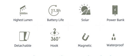 Projectors LED, solar rechargeable, furnished with a classy tripod
