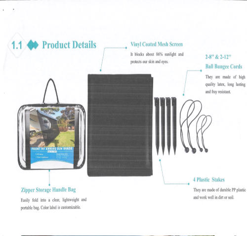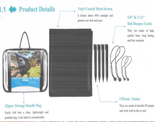 These sunshades are adaptable to any types of camping-car stores such as FIAMMA or TULLE rail bars, can be